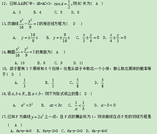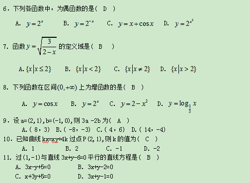 2023年浙江省成人高考专升本《高数二》预习试题及答案三