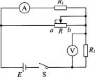 5.如图,R1和R2为定值电阻,R为滑动变阻器,E为电源。电路接通后,电流表A和电压表V均有示数。现将R上的滑片由c点向a端滑动,则( )