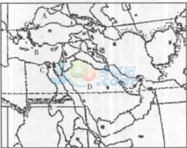 22.第二次世界大战以来的半个多世纪里,世界上几乎没有一个地区像中东地区,一直成为全世界关注的热点地区。在电视的国际新闻中,差不多每天都有关于中东的报道,如巴以冲突、伊朗的核问题、伊拉克战争、利比亚战争等。读下图,回答有关问题。(10分)