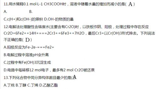 2017年成人高考高起点理科综合试题及答案(一)