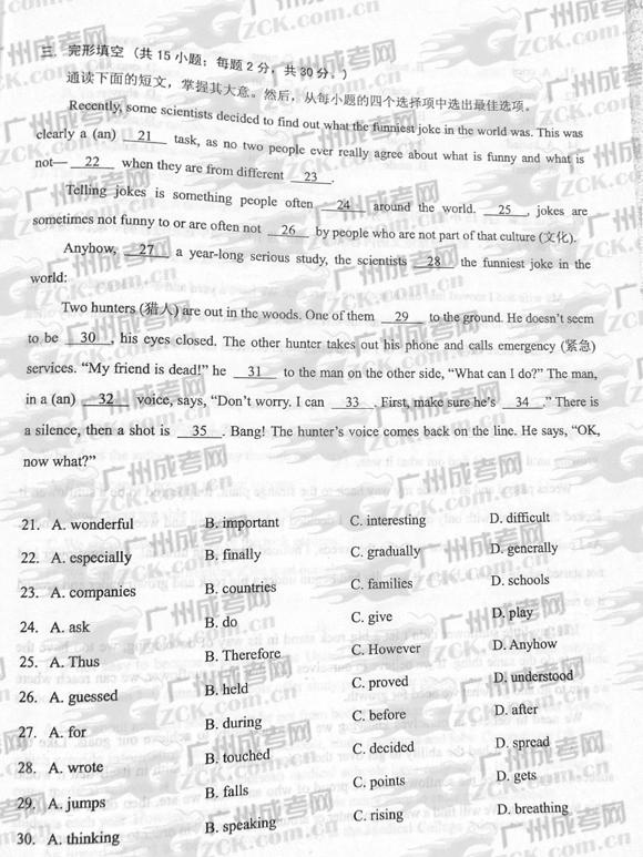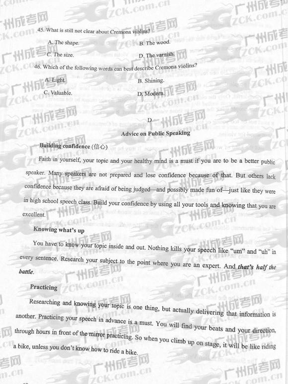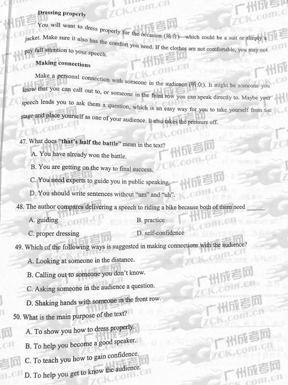 成人高考2012年统一考试英语试题