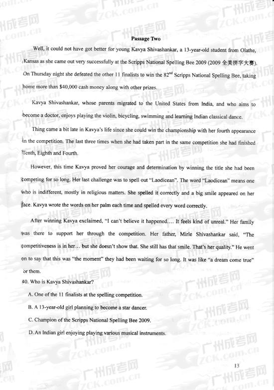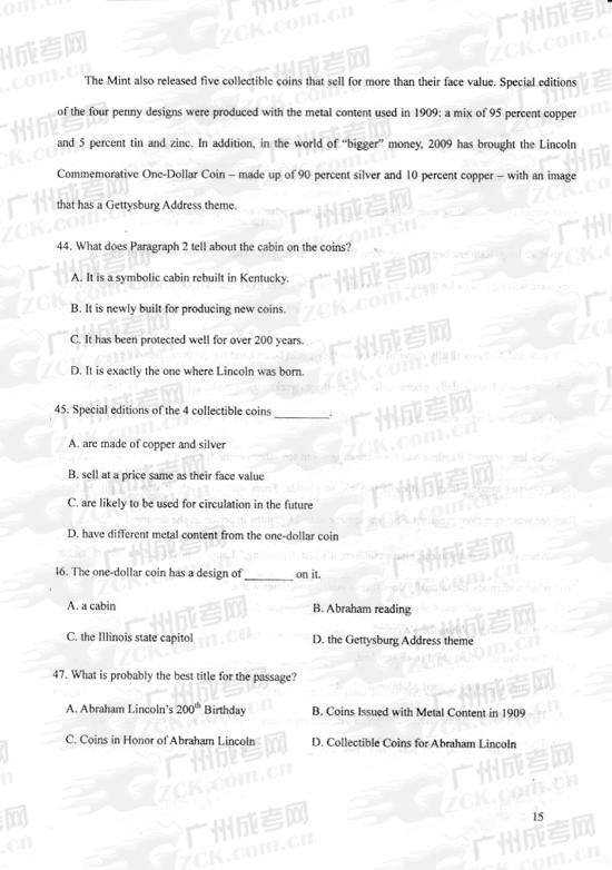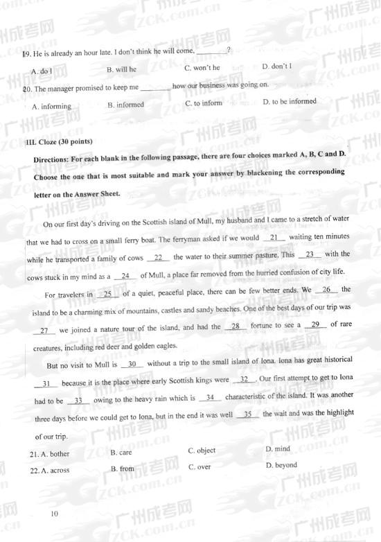 浙江2024年成考专升本《英语》练习试题及答案(十)