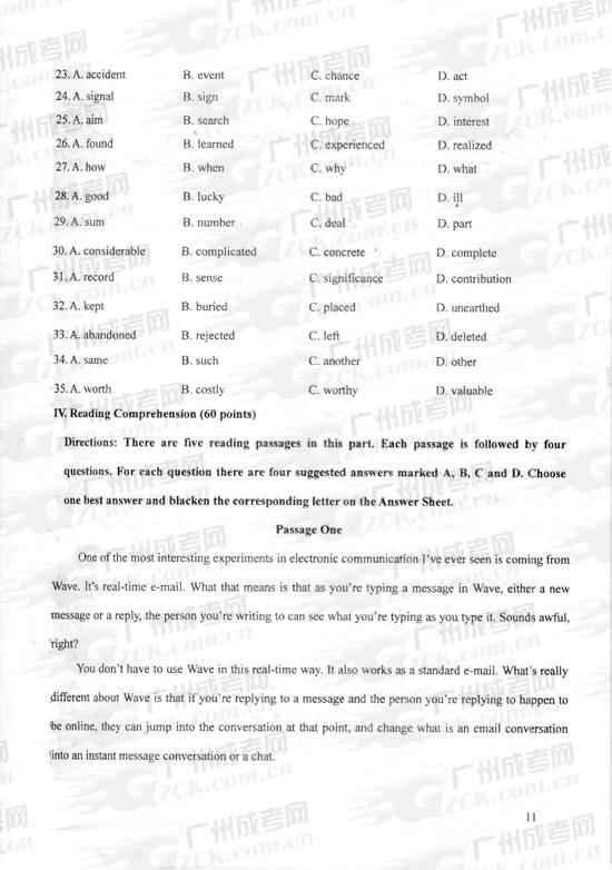 2023年浙江省成人高考专升本《英语》预习试题及答案三