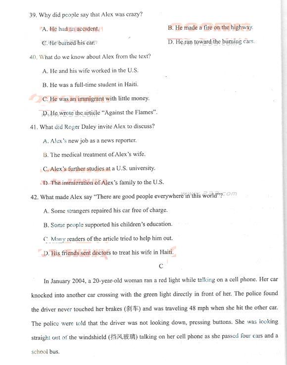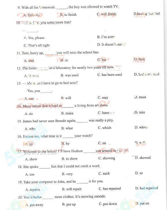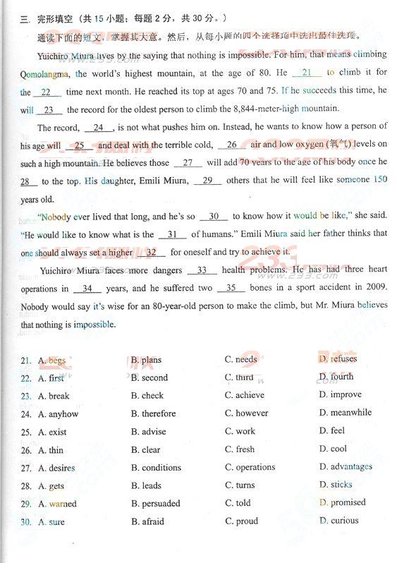 2012年成人高考高起点英语历年真题及答案