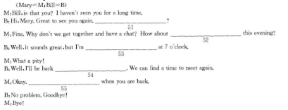 提示:Mary与Bill不期而遇,邀请他一起吃晚饭。但Bill当晚7点要去北京,下周一回来。Mary让Bill回来后给她打电话。